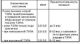 Таблица 4. Назначение АНД при подозреии или развитии ТЭЛА