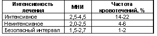 Частота кровотечений в зависимости от интенсивности лечения АНД приведена в табл. 6.