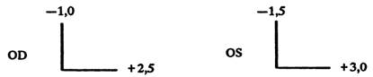 При исследовании на рефрактометре Хартингера выявлена аметропия ОD +1,5 D, OS +2,0 D. При пробном подборе линз: