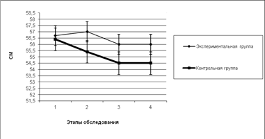 | ЭГ | 56,0±1,3 | P>0,05 | 38,0±2,9 | P>0,05 | 56,7±1,0 | P<0,05 | 38,5±3,3 | P>0,05 | 61,6±8,5 | P<0,05 |