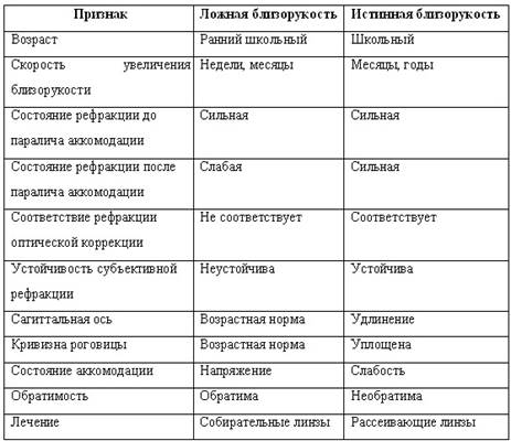 1.3 Дифференциальная диагностика ложной и истинной близорукости