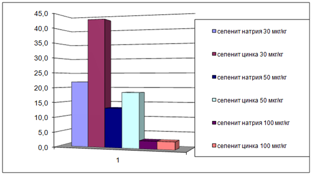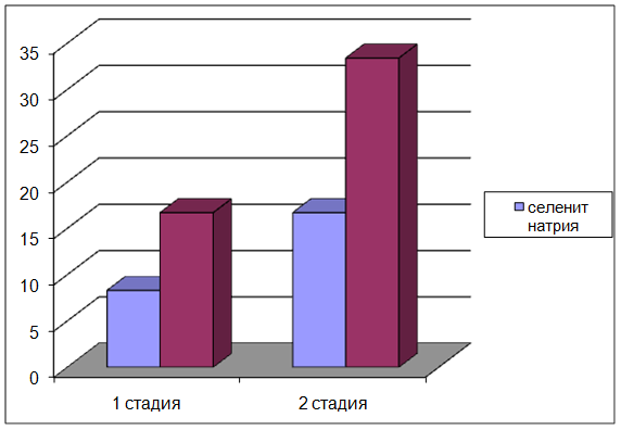 Высокая эффективность селенита натрия связана с его способностью повышать активность GPX. Этот фермент способствует накоплению глутатиона, прекращающего или ограничивающего процессы ПОЛ и его распространение [5, 6, 7].