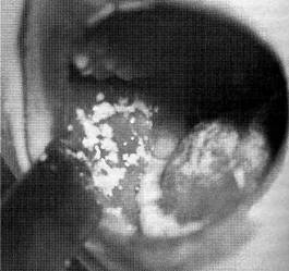 чувство жжения в области наружных половых органов. Характерны выделения белого цвета. В области спайки, преддверия, больших и малых губ и на коже промежности возникают отек, застойная гиперемия, появляются белые творожистые наложения и обрывки отслоившегося эпидермиса. Микроскопически в выделениях из влагалища обнаруживаются скопления дрожжепо-добных клеток и псевдомицелия. У мальчиков баланопоститы сопровождаются белыми сметано-образными выделениями из гиперемированного наружного отверстия мочеиспускательного канала. На отечном и гиперемированном, а местами эрозированном, внутреннем листке крайней плоти и головке полового члена имеются белые крошко-витые наложения.