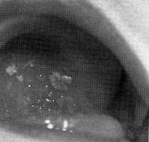 Рис. 145. Кандидозная инфекция. Наложение на твердом небе.