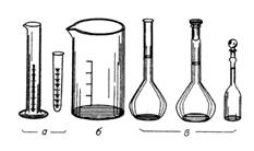 При готуванні рідких лікарських форм дозування роблять за допомогою спеціального мірного посуду, градуйованого визначеною кількістю мілілітрів. Для дозування води (маса 1 мл води при кімнатній температурі практично дорівнює 1,0 г) та інших рідин, що мають однакову з нею щільність, застосовують циліндри, мензурки, мірні колби, аптечні бюретки і піпетки. Густі, в'язкі, малорухомі рідини (жирні олії, сиропи, гліцерин), як правило, дозують за масою.
