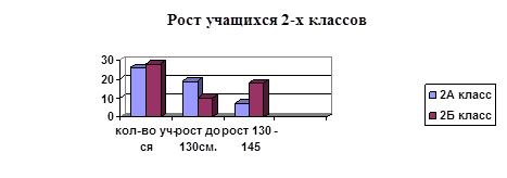 Как мы видим из таблицы столы и стулья не соответствуют гигиеническим нормам для 29 детей обоих классов имеющих рост до 130см., для детей имеющих рост 130см и более во 2 «Б» не соответствует 4 комплекта мебели.