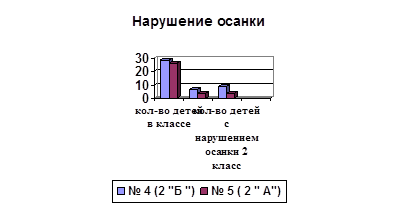 | Номер кабинета | Кол-во детей в классе | Кол-во детей с нарушением осанки | |