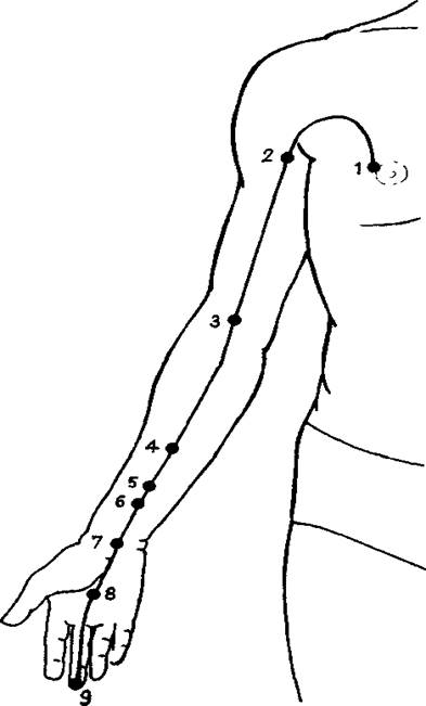 дит через точку Р9 тай-юань у лучезапястного сустава