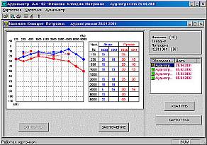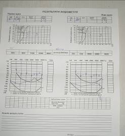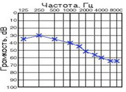 При проведении слуховой диагностики проводится аудиометрический тест, результатом которого является построение аудиограммы. Аудиограмма - графическое представление споcoбности уха различать звуки различной частоты в зависимости от их громкости. Снятие аудиограммы производится для каждого уха пациента.