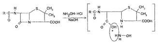 Реакция щелочного гидролиза пенициллинов используется в гидроксамовой реакции, в количественном йодометрическом определении пенициллинов.