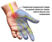 Тунельний синдром може проявитися після кількох годин роботи за комп’ютером. Спочатку виникає виникає відчуття мурах,що біжать по руці. Потім усю руку до ліктя проникає гострий біль. Потім рука зовсім німіє. З часом захворювання може перейти до хронічної стадії, яка відрізняється послаблення пальців, оніміння, болю і тяжкості в руці. Незручність долоні і пальців створює утруднення у процесі письма, а намагання підняти важкий предмет спричиняє біль у зап’ястному суглобі. Уві сні з’являється хворобливість та оніміння долонь. Людина, у якої розвинувся тунельний синдром, може втратити працездатність на довший термін, ніж при переломі руки. Час відновлення працездатності при переломі руки – 19 діб, при ампутації – 21 доба,а вже при початкових стадіях тунельного синдрому зап’ястного каналу – 32 доби. Для виявлення початкових стадій тунельного синдрому в літературі пропонують провести тест: поєднайте тильні сторони кистей і витягніть руки так, щоб лікті були спрямовані в сторони, а зап’ястя зігнути під кутом 900 . Якщо протягом хвилини буде відчуватися біль, то необхідно починати лікування. Про наближення цієї хвороб свідчать набрякання сухожиль на кистях рук і виникнення пухлин.