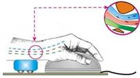 Наступною загрозою є синдром зап’ястного каналу, або тунельний синдром зап’ястя, який може бути наслідком хронічної травми, трапляється у людей внаслідок тривалої роботи з мишею: постійні напруга і здавлювання приводить до мікротравм, здавлювання нерва прилеглими оточуючими тканинами, через що виникає набряк. Згідно з існуючими даними близько 40% обстежених відзначали невизначені неприємні відчуття, а у 21% діагностували тунельний синдром. Останнім часом цей синдром діагностують у любителів набирати sms-повідомлення на мобільному телефоні.