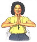 6. З’єднайте пальці рук між собою, долоні повинні бути повернуті одна до одної внутрішніми сторонами і злегка розставленими. Удавлюйте пальці рук один одним, після цього розслабте кисті і потрясіть ними.