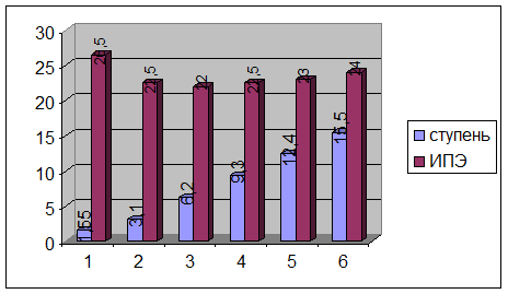 Первоначально величина показателя уменьшается и удерживается некоторое время на постоянном уровне (см. Приложение 3). Величину нагрузки (в Вт), при которой ИПЭ достигает минимального значения и считают критерием физической работоспособности.