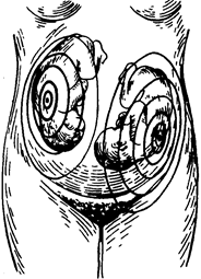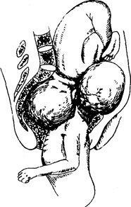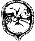8. Очень редким и чрезвычайно тяжелым осложнением является одновременное вступление в таз головок обоих близнецов, при котором возникает так называемая коллюзия, или сцепление близнецов