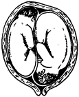 Однояйцовая двойня. Однояйцовая двойня имеет общую капсульную и ворсистую оболочки и общую плаценту; сосуды (как артериальные, так и венозные) обоих близнецов в плаценте сообщаются с помощью многочисленных анастомозов. Водная оболочка у каждого близнеца отдельная, перегородка между плодными мешками состоит из двух водных оболочек (биамниотическая двойня).