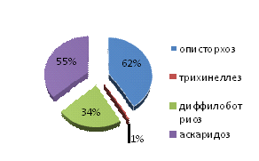 Сложная эпидемиологическая ситуация продолжает оставаться в очагах биогельминтозов - описторхоза, дифиллоботриоза, эхинококкоза, трихинеллеза, аскаридоза и т.д (рис.1).