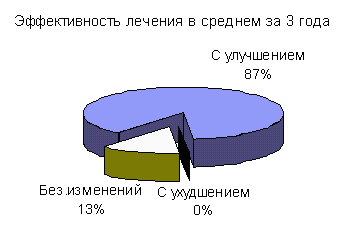 | Год | Пров. сеансов | Число пациентов | С улучшением | Без изменен. | С ухудшением | |||