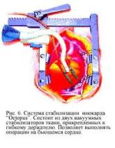 Минимально-инвазивная кардиохирургия с использованием системы стабилизации миокарда "Octopus". Минимально-инвазивная кардиохирургия - это новый, менее травматичный подход к операциям на сердце. "Octopus"-это недавно разработанный аппарат, который отлично стабилизует сердце и позволяет быстро и безопасно наложить анастомоз на работающем сердце без искусственного кровообращения.