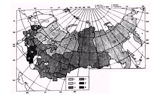 Экономические рйоны России: 1. Северо-Западный, 2. Центральный, 3. Центрально-Черноземный, 4. Волго-Вятский, 5. Северо-Кавказский, 6. Поволжский, 7. Уральский, 8. Западно-Сибирский, 9. Восточно-Сибирский, 10. Дальноевосточный, 11. Прибалтийский, 12. Юго-Западный, 13. Донецко-Приднепровский, 14. Южный, 15. Закавказский