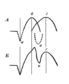 - позитивные колебания, перекрывающиеся во времени. На рис. 1Б показана кривая, полученная при суммации
