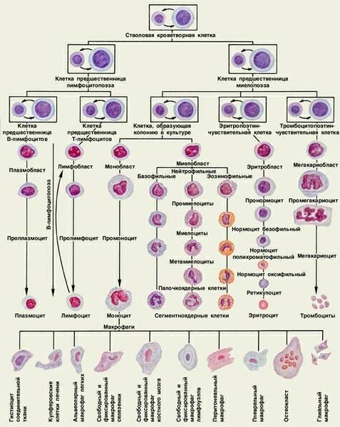 Все приведенные выше стадии развития клеток составляют четыре основных класса, или компартмента, гемопоэза: