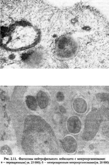 Определенную роль играет каталаза, выводящие из клеток избыток перекиси водорода. Супероксидный анион обезвреживается особым ферментом - супероксиддисмутазой. У фагоцитов имеются и другие не связанные с кислородом (кислороднезависимые) механизмы борьбы с микроорганизмами. К ним относятся: лизоцим, разрушающий мембраны бактерий; лактоферрин, конкурирующий за ионы железа и, наконец, дефензины (белки со структурой насыщенной аргинином), катионные белки, нарушающие структуру мембран микроорганизмов. Совместное действие механизмов обеих групп приводит к разрушению объектов фагоцитоза.