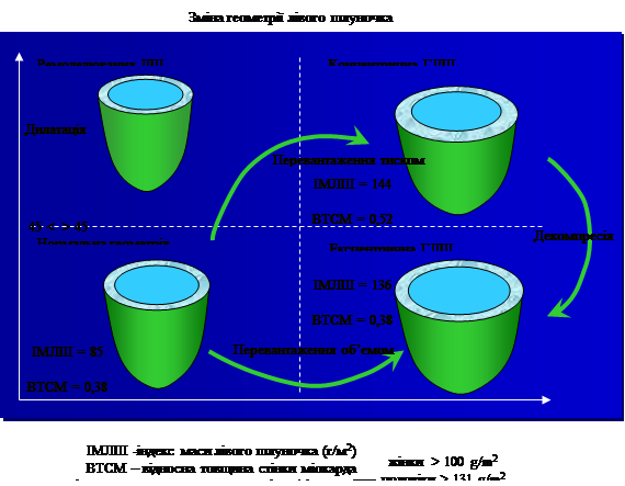 Головні ознаки ремоделювання ЛШ: