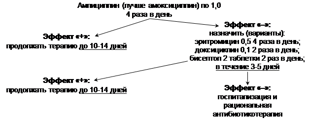 во всех случаях антибиотикотерапия должна продолжаться не менее 5 дней и до тех пор, пока не удастся добиться нормализации температуры на протяжении 48 часов;