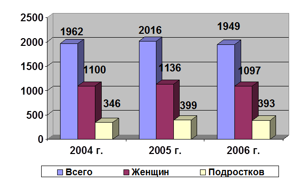 За 2003-2005 гг. отмечается рост экстрагенитальной и гинекологической патологии. Факторы риска и причины те же, что и причины, влияющие на общую заболеваемость. Это социальные, экологические факторы, ранее начало половой жизни, нездоровый образ жизни. Случаев перинатальной смертности за этот период на участке не зарегистрировано.