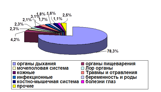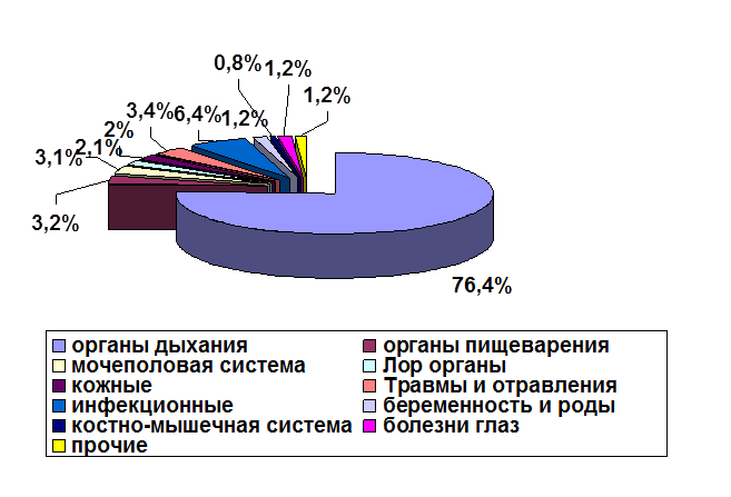 Я работаю в студенческой поликлинике 5 лет. Многолетний опыт работы позволяет провести количественный и структурный анализ заболеваемости и отметить ежегодный подъем заболеваний органов верхних дыхательных путей и их осложнений, удельный вес которых составляет до 80%.