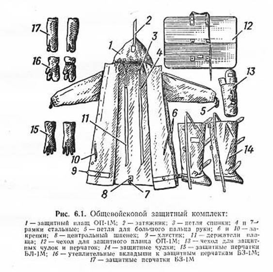 Изолирующие средства защиты кожи изготавливают из прорезиненной ткани и применяют при длительном нахождении людей на зараженной территории, при выполнении дегазационных и дезинфекционных работ в очагах поражения и зонах заражения