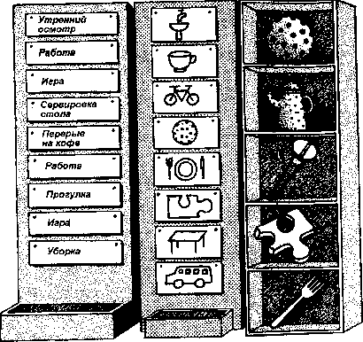 Для человека, страдающего аутизмом, разграничения, которые мы хотели бы провести между рабочим временем и свободным, являются искусственными. Однажды я подготовил для аутичного человека занятия, которые он должен был выполнить в свое свободное время, которое было представлено в виде "карточки свободного времени" в его ежедневном плане. Однако поскольку он в действительности не овладел этой деятельностью, то начал протестовать: это была "работа", и я должен был объявить об этом с помощью "рабочей карточки".