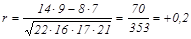 8) подставляют полученные данные в исходную формулу и вычисляют коэффициент парной корреляции.