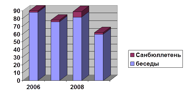 Выпустила 9 санитарных бюллетеней на тему: «Профилактика БППП», «Профилактика СПИД», « Профилактика чесотки и дерматомикозов»