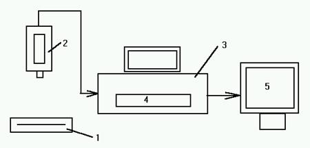 1-негатоскоп; 2-телевизионная камера; 3-ПЭВМ; 4-фрейм-граббер; 5-телемонитор.