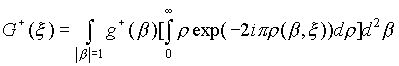 устанавливающее связь между преобразованием Фурье лучевых данных и преобразованием Фурье самой функции f , преобразование Фурье понимается в смысле обобщенных функций. Для того, чтобы использовать эту формулу для нахождения функции f нужно иметь формулы для вычисления обобщенного преобразования Фурье по лучевым данным. Такие формулы были приведены выше.