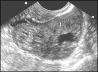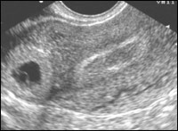 При ТВ сканировании диагностика маточной беременности возможна с 4-5 недель от дня последней менструации, когда диаметр плодного яйца составляет 2-4 мм. в сроке 5-6 недель беременности визуализируется эмбрион, копчико-теменной размер которого составляет 4-5 мм, а кардиальная пульсация начинает определяться с 6 недель, что можно зафиксировать с помощью допплерографии. Обнаружение живого эмбриона в полости матки является достоверным признаком маточной беременности.