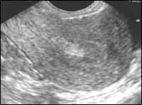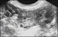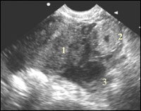 · визуализация в проекции придатков матки гетерогенного образования, имеющего различную форму и размеры;