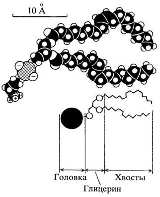 Распределение фосфолипидов также неоднородно: холинсодержащие расположены в основном на наружной стороне мембраны, а содержащие аминогруппу — на внутренней. Внутренние участки хвостов молекул фосфолипидов не ограничены в своем движении и ответственны за текучесть мембраны.