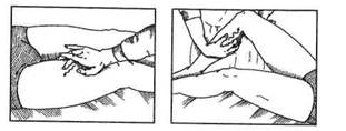 | Коленный | Лежа на спине, под колен- | Сидя или стоя, | Массируют одной | ||
