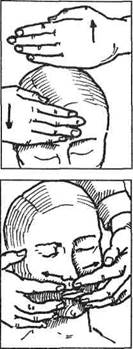 | Лицо | Сидя на стуле, пациент за- | Стоя, сзади мас- | Двумя руками | ||