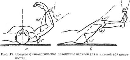 | или согнуты в локтевых суставах и касаются лба; под голеностопные суставы подложен валик | вой стороны | ||||