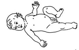 При выраженности тонического лабиринтного рефлекса (ЛТР) у ребенка с церебральным параличом в положении на спине повышается тонус разгибательных мышц. Такой ребенок не может поднять голову или делает это с большим трудом, не может вытянуть руки вперед, чтобы взять предмет, или подтянуться и сесть, повернуться со спины на живот. В положении на животе он не может поднять голову, разогнуть руки и опереться на них, встать на четвереньки, принять вертикальную позу (рис. 1).
