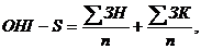 Расчет индекса складывается из значений, полученных для каждого компонента индекса с делением на количество обследованных поверхностей, с последующим суммированием обоих значений.