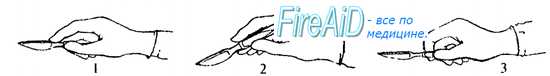 Положение скальпеля в руке