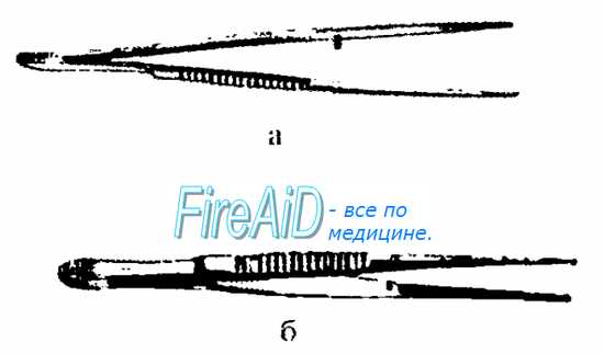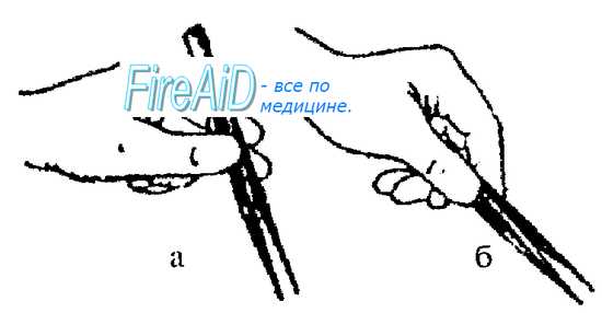 Рис 2.6. Фиксация пинцета . а — правильная; б — неправильная