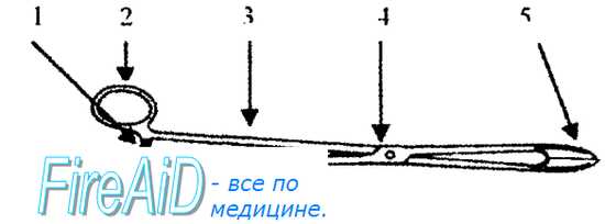 Назначение лигатурной иглы Дешана : проведение лигатур под кровеносный сосуд и другие анатомические образования. По изгибу игла может быть для правой и левой рук.