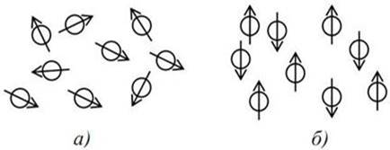 Рисунок 1.1 – Распределение ядер при отсутствии (а) и наличии (б)