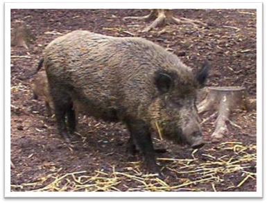 Свиньи (Sus scrofa ferus). Очаги одомашнивания свиней - Азия, Европа, Средиземноморье. Существует три диких предка пород свиней: европейский, восточно-азиатский и средиземноморский дикий кабан (Рис. 9). Европейский - достигает 350 кг, высота в холке 90-100 см, череп длинный, профиль прямой. Средиземноморского дикого кабана считают прародителем пород свиней побережья Средиземного моря.